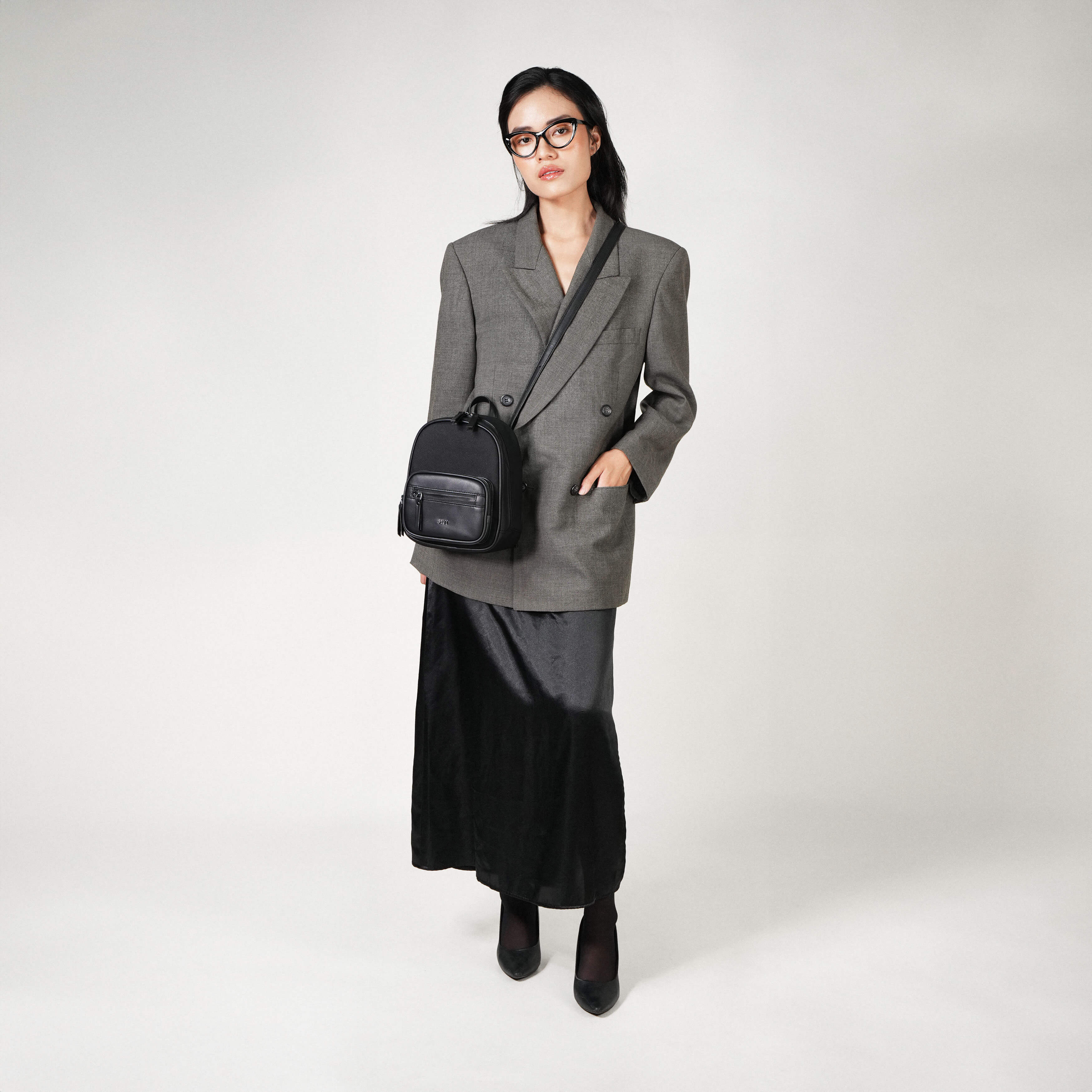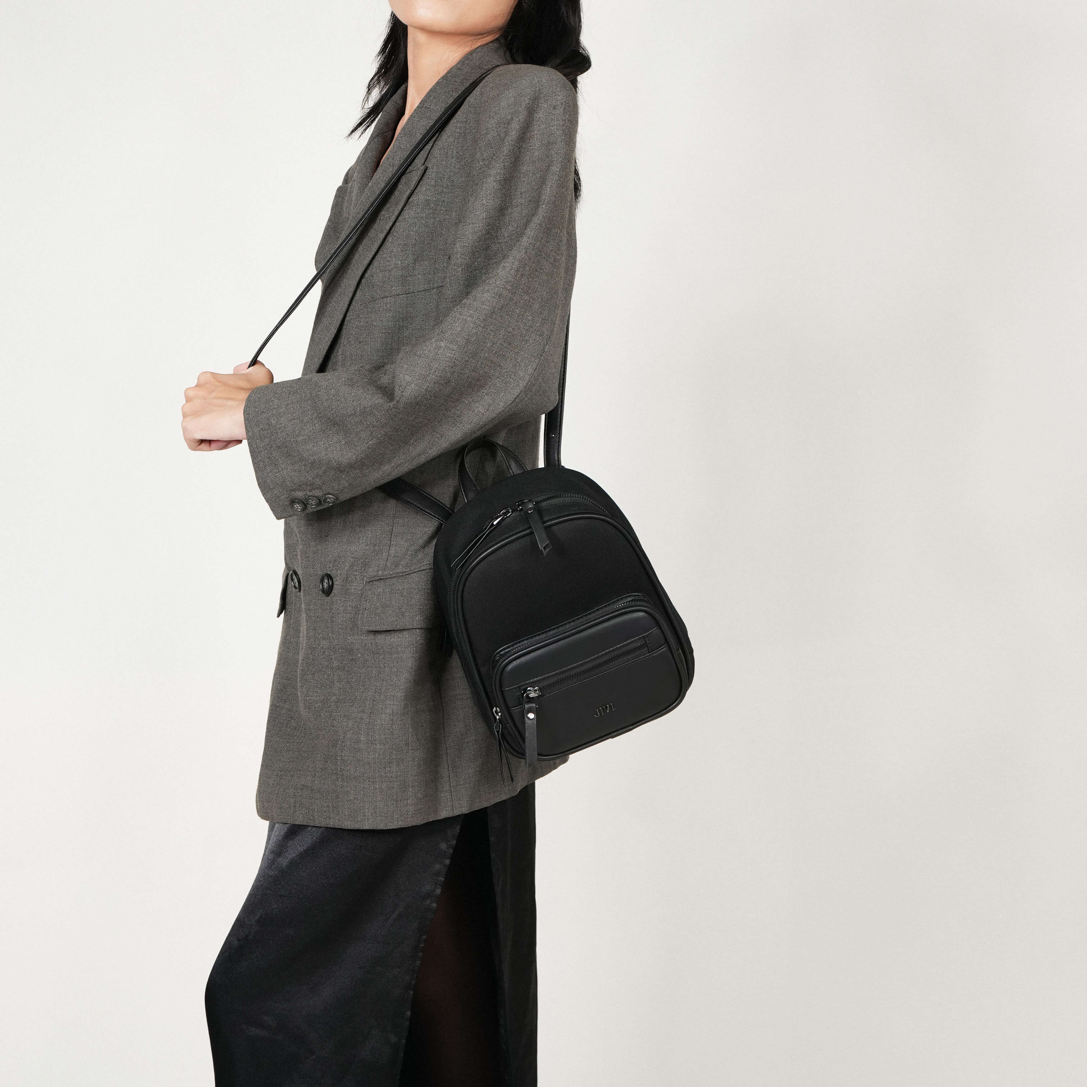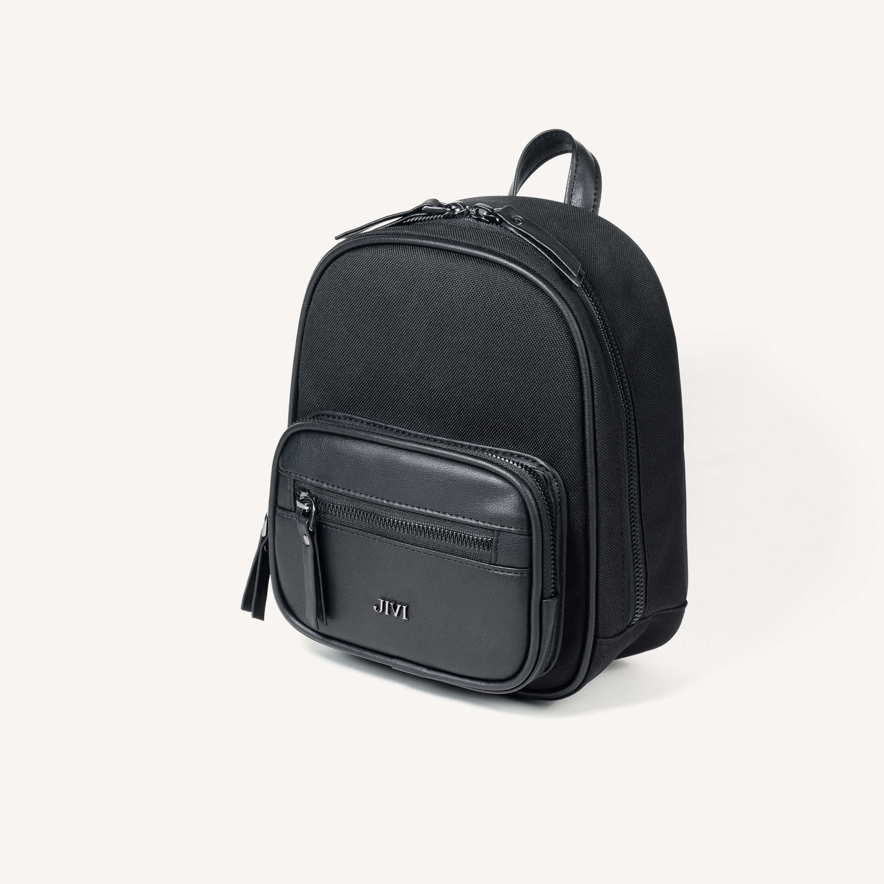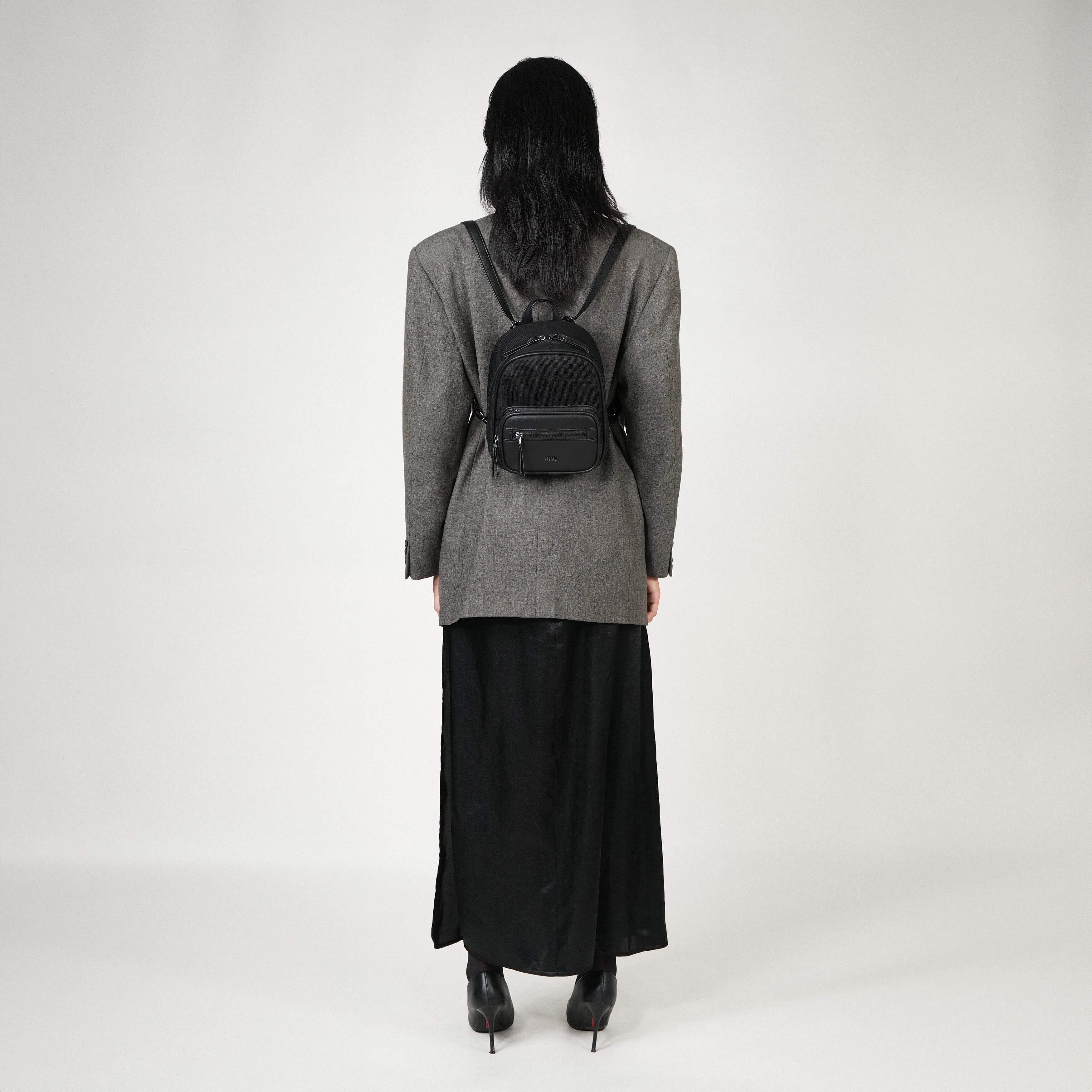 Besides, the design also exploits the contrast between two materials (microfiber leather and canvas polyester), the softness of each edge detail, the handmade zipper pulls and the sharpness of high-quality molded Atimol accessories.